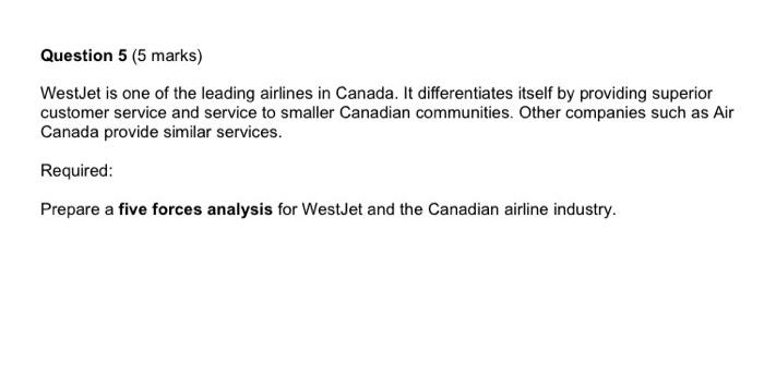 Solved Question 5 5 Marks Westjet Is One Of The Leading Chegg Com